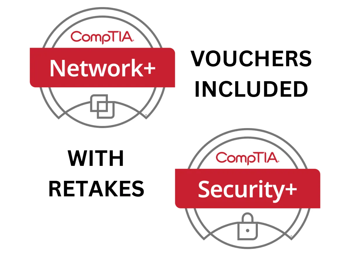 CompTIA exam vouchers for Network+ and Security+ with retake